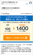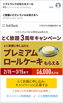 ソフトバンクが提供する各種キャンペーン・サービス・商品などの情報、ソフトバンクのお客さま向けのおトクな情報をお届けいたします(不定期配信) 。