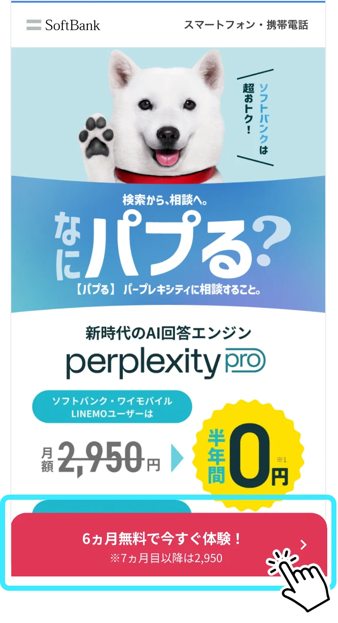 終了時期は、当社ホームページなどでご案内します。 - 初めて「Perplexity Pro for SoftBank」にご加入した方は6ヵ月間月額料金無料でご利用いただけます。