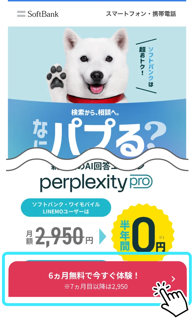終了時期は、当社ホームページなどでご案内します。 - 初めて「Perplexity Pro for SoftBank」にご加入した方は6ヵ月間月額料金無料でご利用いただけます。