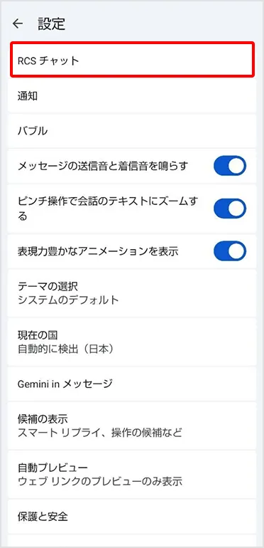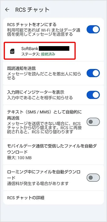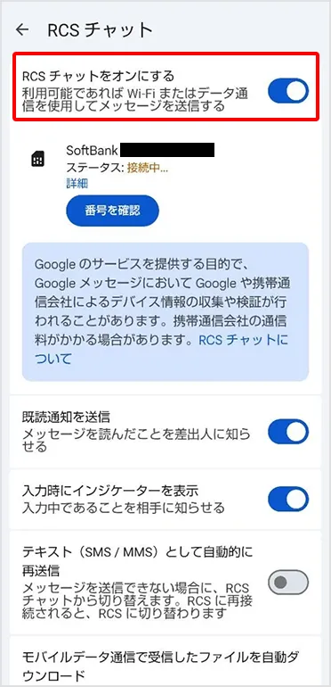 「RCSチャット」がオンになっていることを確認