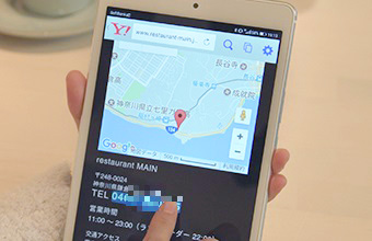 タブレットで予約したいお店を見つけたとき、電話番号をタップするだけでスマートフォンや4G ケータイに転送できるので、すぐに電話予約ができます。