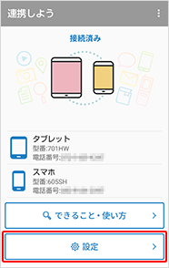 「連携しよう」アプリケーションを起動し、「設定」をタップします。