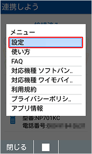 「連携しよう」アプリケーションを起動し、「メニュー」から「設定」を選択します。