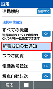 「新着お知らせ通知」を選択し、次の画面で設定を変更します。