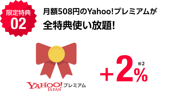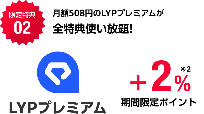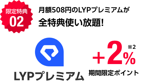 - ※1Yahoo!ショッピングでのPayPay(クレジット/残高/ポイント)での決済額に対し付与(付与上限300pt/月)。ワイモバイル・LINEMO・LINEモバイルユーザーは対象外。