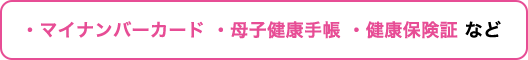 ・マイナンバーカード・母子健康手帳・資格確認書 など ・マイナンバーカード・母子健康手帳・資格確認書 など