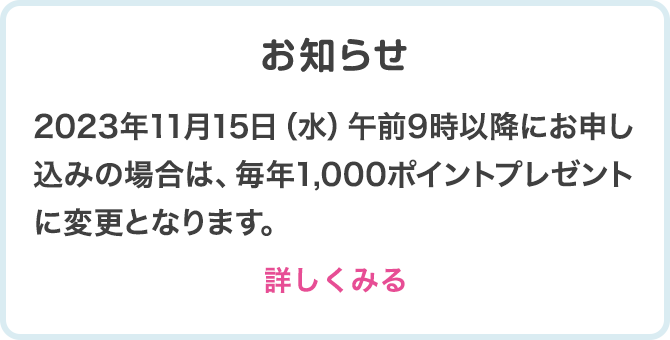 - 親権者または扶養者おひとりにつきお子さま3人まで登録できます(お子さまの登録人数分の特典が付与されます)。