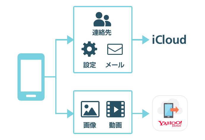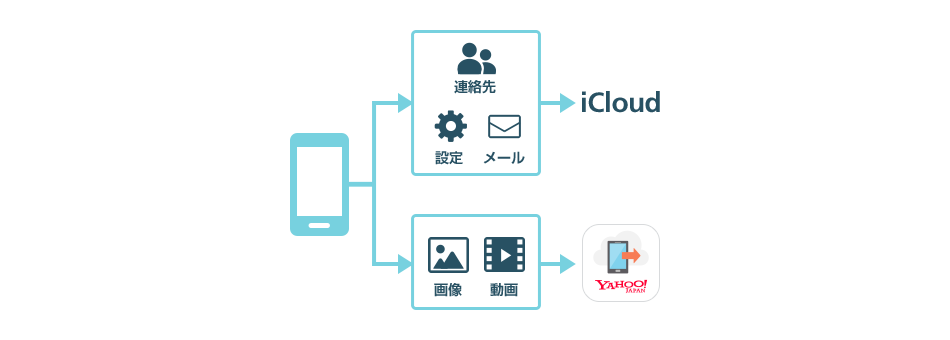 iCloud と「Yahoo!かんたんバックアップ」を使ってバックアップするのがおすすめです。iCloud は5GBまでの容量を無料でお使いいただけるので、設定やメール、連絡先などを iCloud で、データ容量の大きい写真や動画を「Yahoo!かんたんバックアップ」でバックアップします。