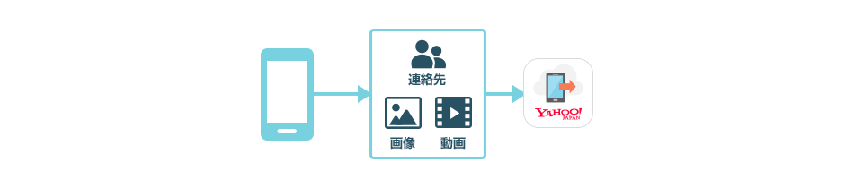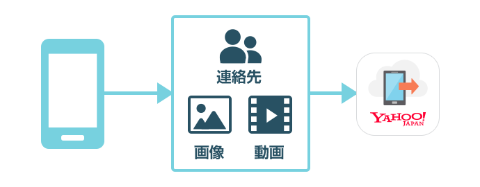 Yahoo!かんたんバックアップを使って、連絡先、写真、動画のバックアップをします。
