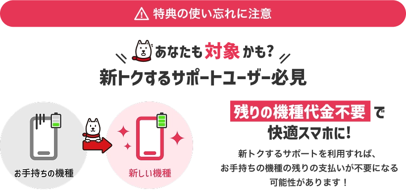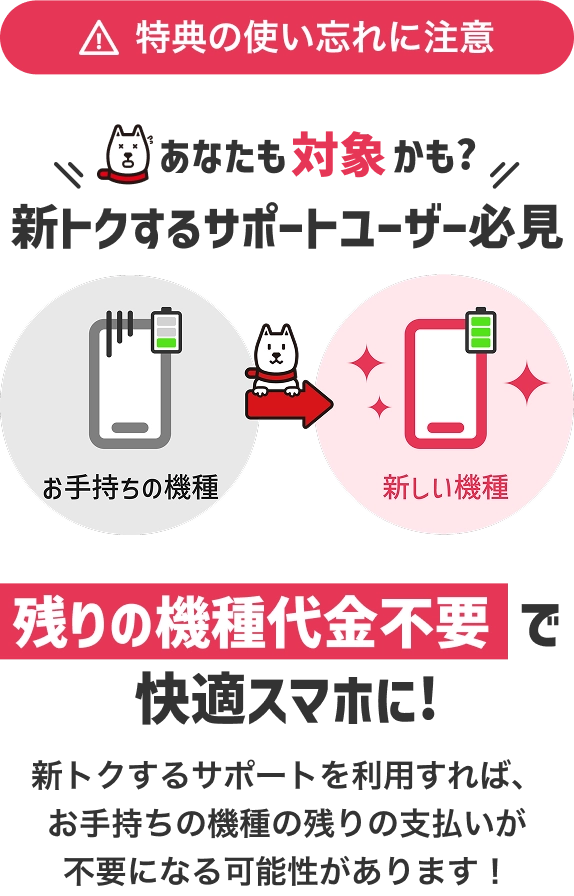対象機種を48回払いで購入すると、自動的に「新トクするサポート+」に加入となります。