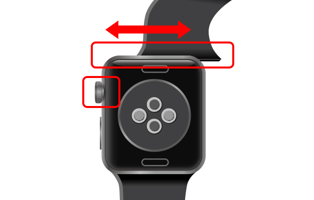 画面を下にし、デジタルクラウン(時計つまみ)を左側にする。
