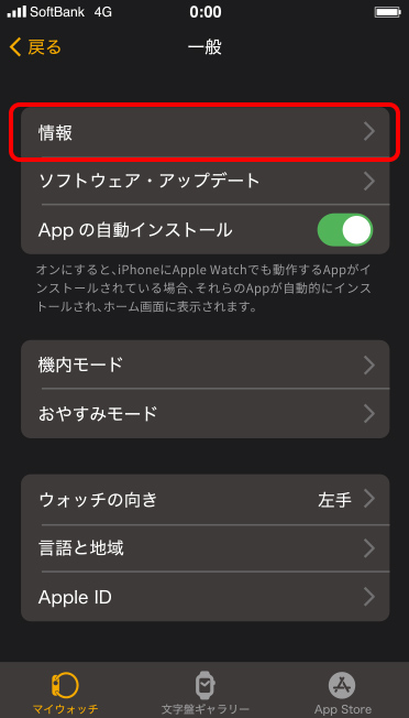 iPhone で Apple Watch App を開く。