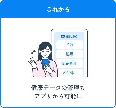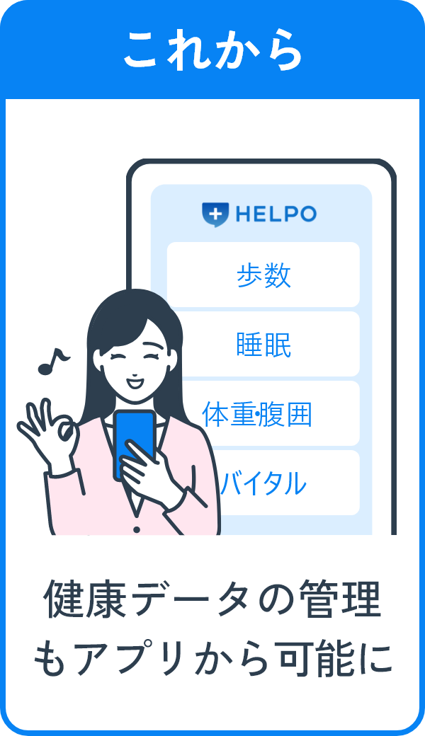 HELPOのアプリ内で、自分の健康に関するデータを管理できたらいいのになぁ...