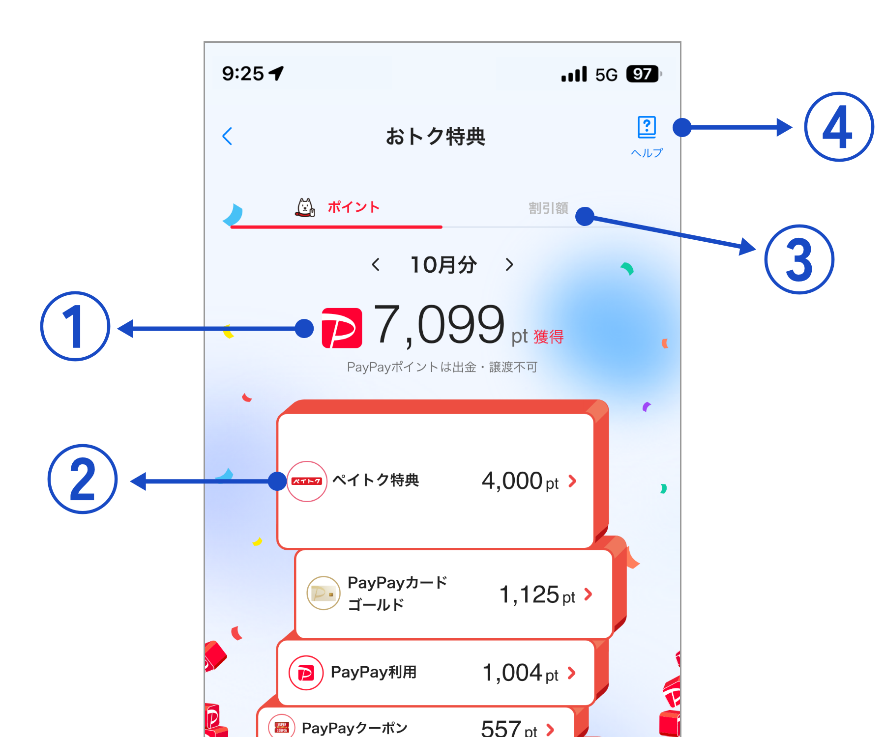 ② 獲得したポイントの内訳が表示されます。タップするとポイントの詳細画面へ遷移します。