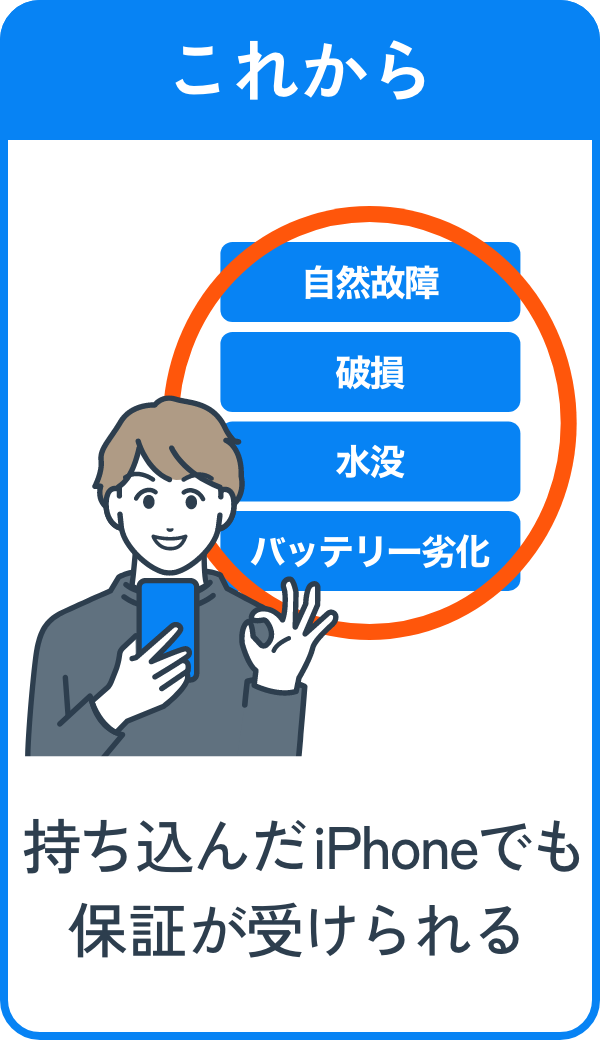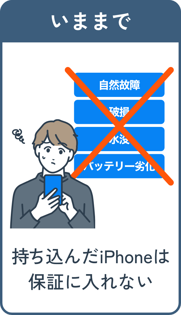 お客さまによって持ち込まれたiPhoneも保証が受けられるようにいたします!