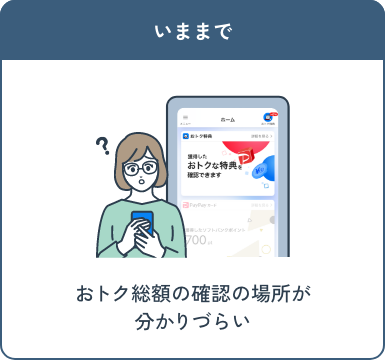 毎月のおトク総額を分かりやすい位置に表示いたします!また多数の機能改善を行いました!