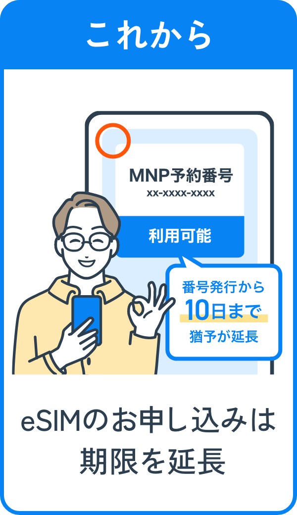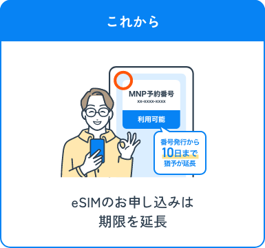 MNP予約番号を発行してから、実質5日以内にeSIM乗り換え手続きをしなければならなかったところ、10日以内に期限を延長しました。