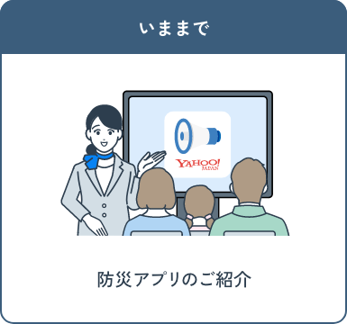 災害発生時に、どのようにスマホを活用するのか避難訓練のシミュレーションを通して習得できるようにしました