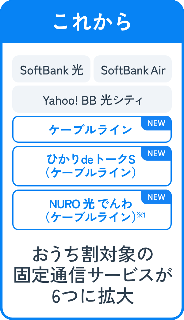 おうち割にケーブルライン/ひかりdeトークS /NURO 光 でんわ※1を追加いたします!