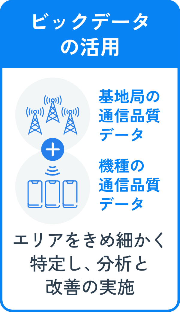 ビックデータを活用して通信品質低下エリアを特定し、分析・改善をしています。