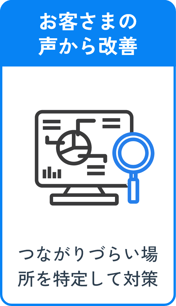 お客さまの声から、つながらない場所を特定して対策を実施しています。