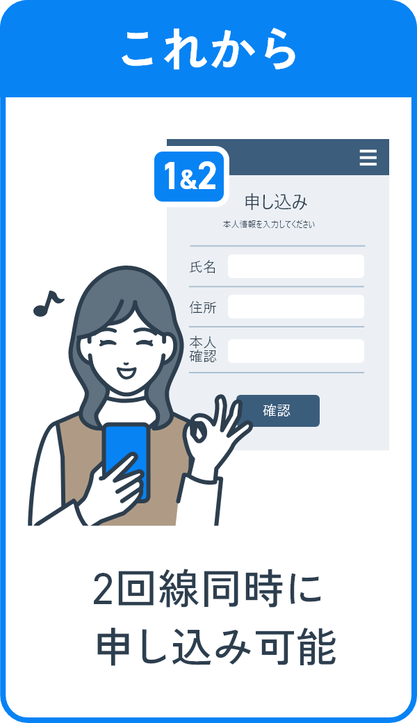 1回のお申し込みで2回線分を簡単にお申し込みできるようにいたします!
