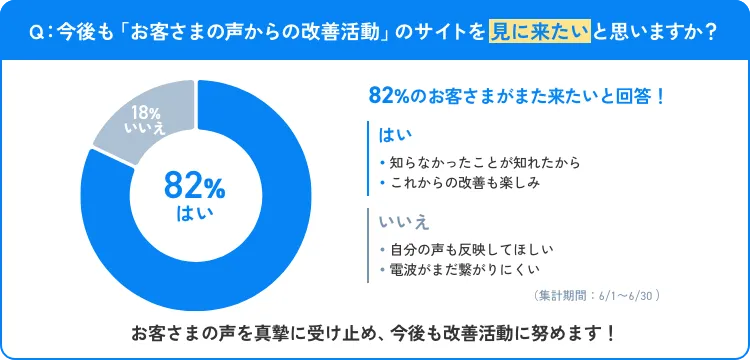 いただいた電波改善のご要望は、社内で内容を確認のうえ、電波状況の改善に向けて順次対応を検討しております。