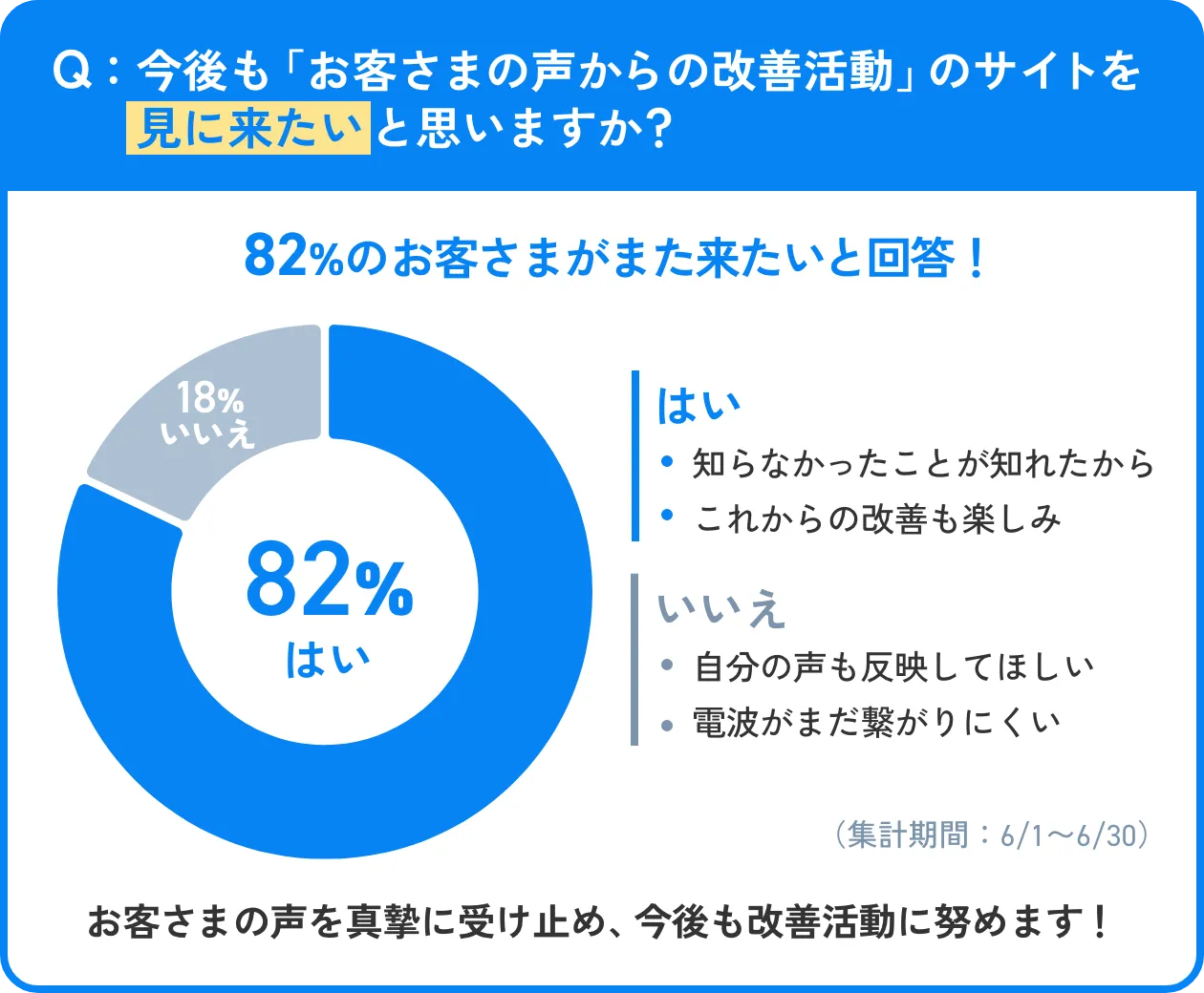 いただいたお客さまの声は1件1件社内でご確認させていただいております。