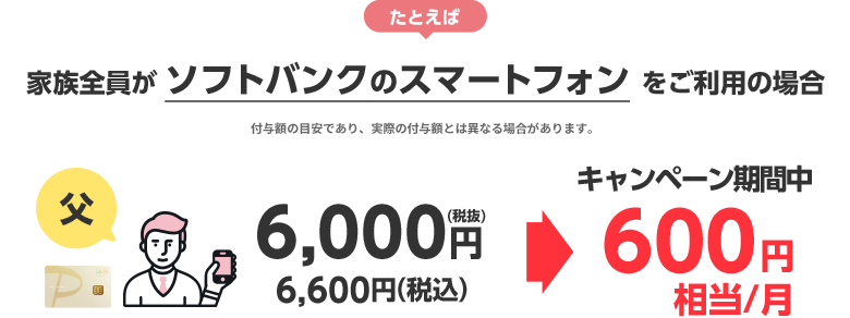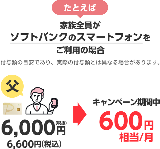 PayPayカード ゴールドをお持ちの方のスマホご利用料金がポイント付与の対象です。ご家族等の料金を一括でお支払いの場合、ご家族等の料金はポイント付与の対象外です。