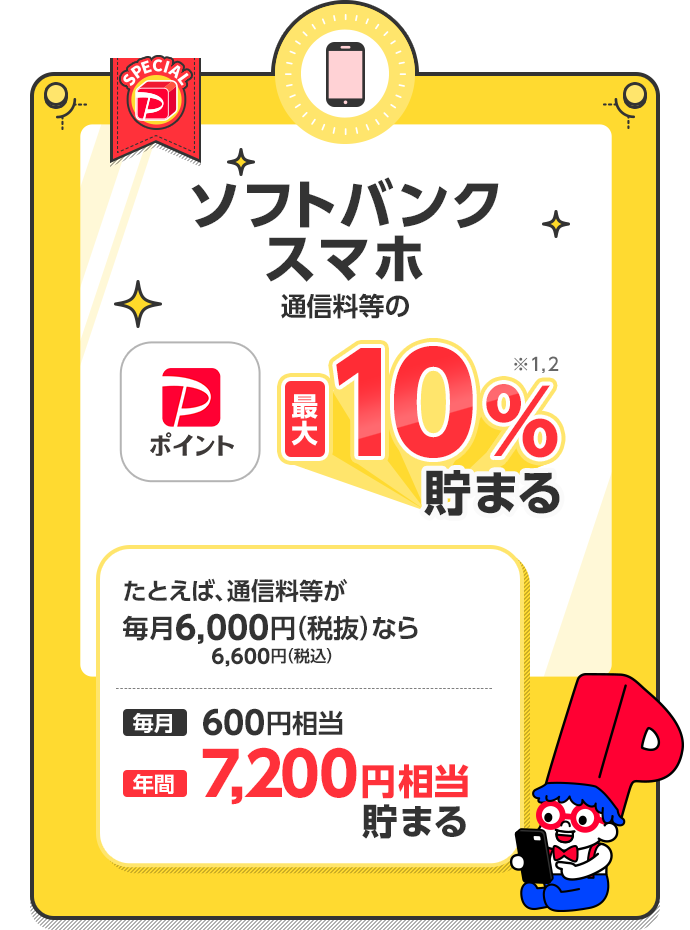 SoftBank 光/Airのみをご利用のお客さまは1.5%となり、PayPayポイントでの付与となります。PayPayポイントはご利用料金200円(税込)ごとに付与。