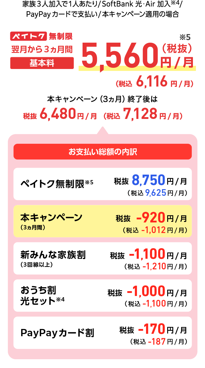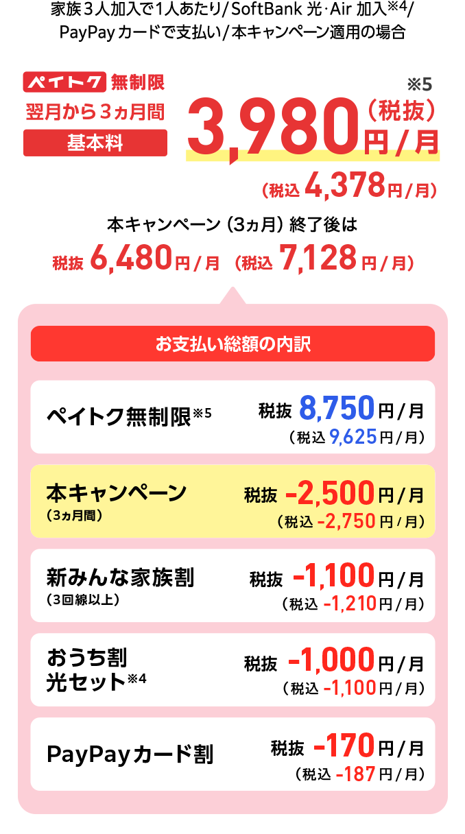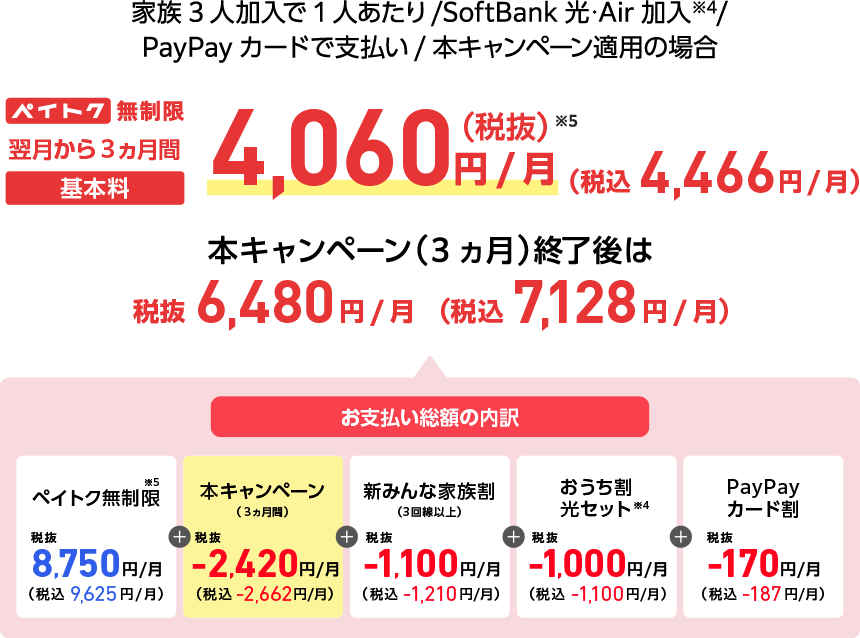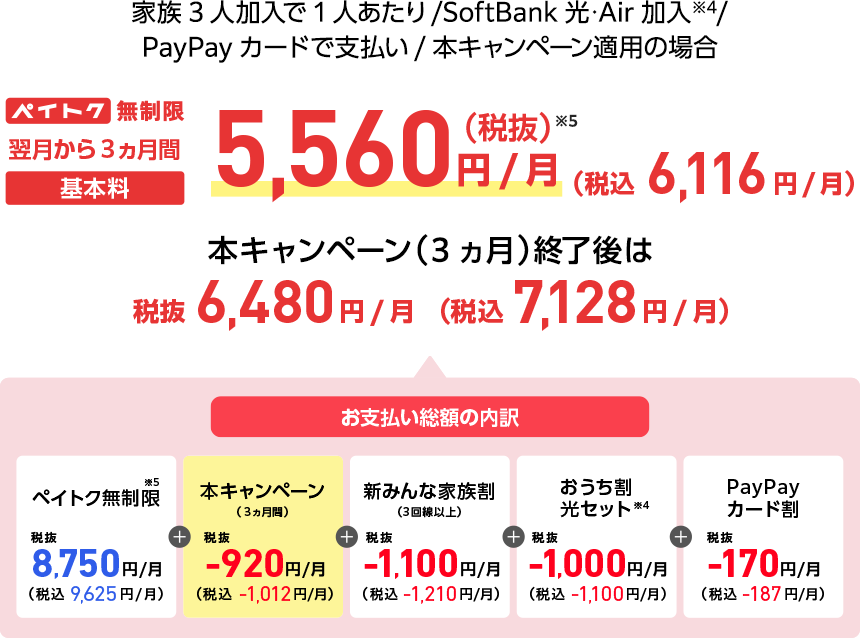 - ソフトバンクをすでにご利用中のお客さまが申し込む場合は、翌請求月から適用されます(一部異なる場合があります。詳細は提供条件書をご確認ください)。