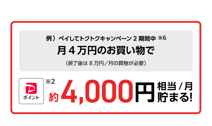 - 適用条件:請求締日時点で、PayPayカードまたはPayPayカード ゴールドが、ご利用料金のお支払い方法として適用されているとき(家族カードも対象です)。