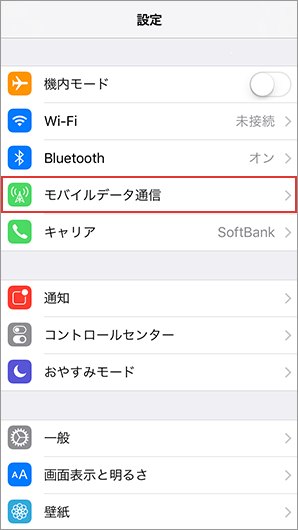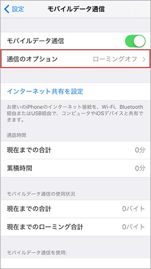 「モバイルデータ通信」→「通信のオプション」をタップし「4Gをオンにする」をオンにします。
