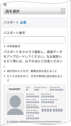 - 利用開始の手続きにはカメラ機能が付いた携帯電話で、パスポートの原本の撮影が必要です。