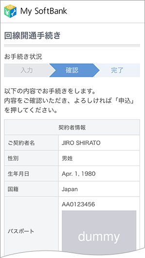 入力した契約者情報に誤りがない事を確認の上で「申込」をタップしてください。
