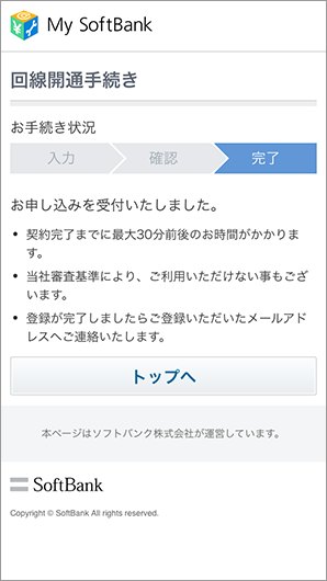 お申し込みを受付いたしました。サービスがご利用いただけます。