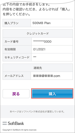 入力内容に誤りがない事を確認の上で「購入」をタップしてください。