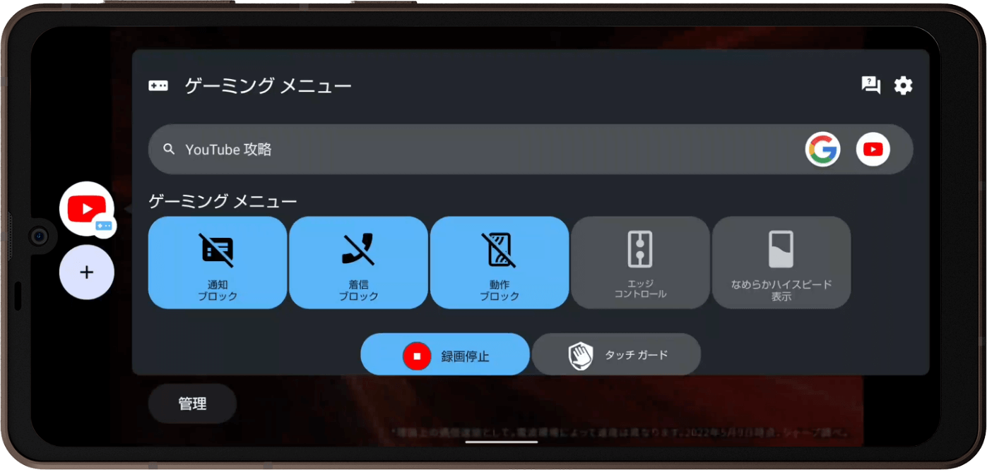 攻略法検索・画質調整・ゲーム録画タッチガード・YouTube検索・通知&動作ブロック