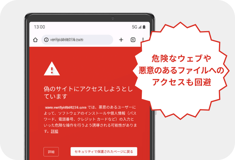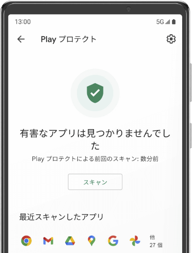 端末、データ、アプリの安全性を保つため、端末の定期的なスキャンと改善を通じて、常に最新のモバイルセキュリティを提供します。