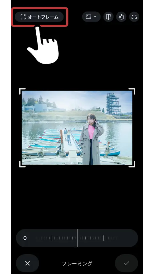 「オートフレーム」をタップ