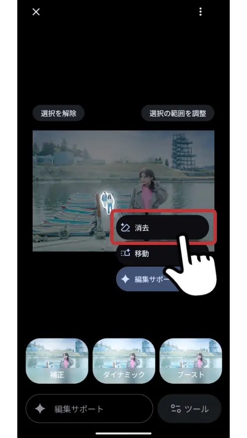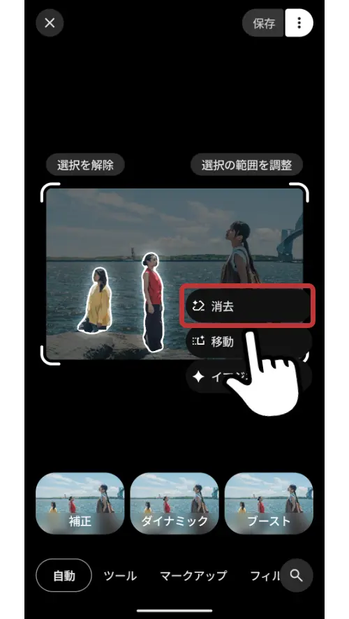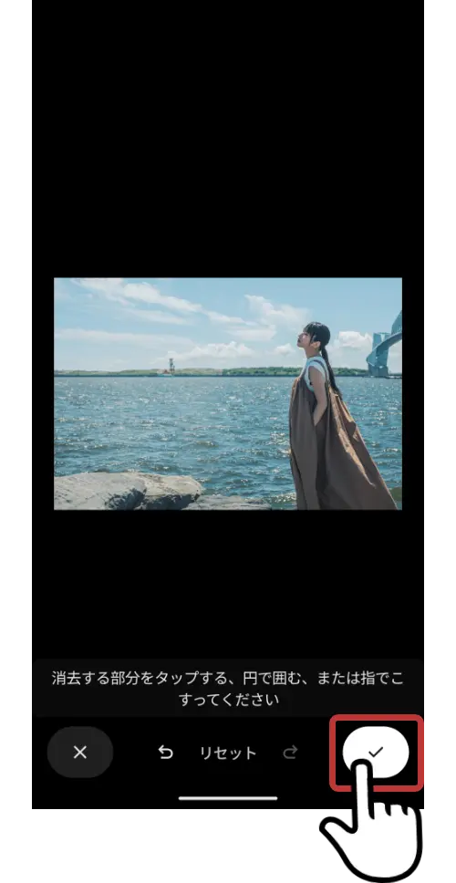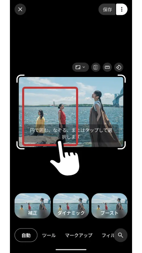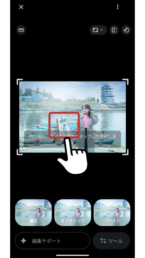 この画面が表示されたら、円で囲む、なぞる、またはタップして選択します
