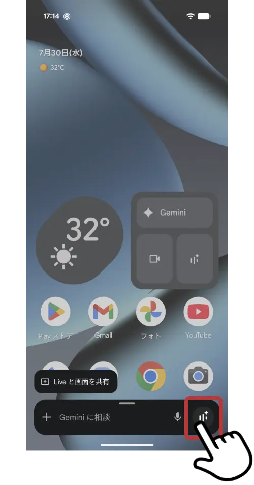 」をタップすれば、今見ているものについて Gemini とやりとりできます