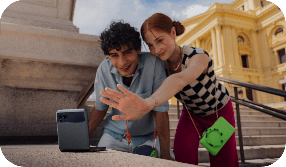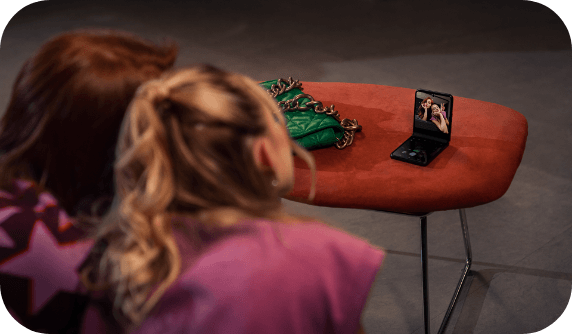 自由な角度で自立する「フレックスビュースタイル」が折りたたみスマートフォンならではの自由な使い方を可能に。