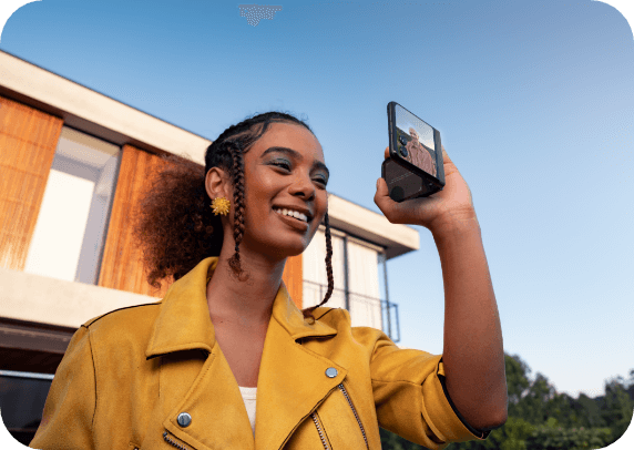 端末を閉じたままさまざまな操作が可能。カメラ撮影やコンテンツ視聴をもっと自由に楽しめる。