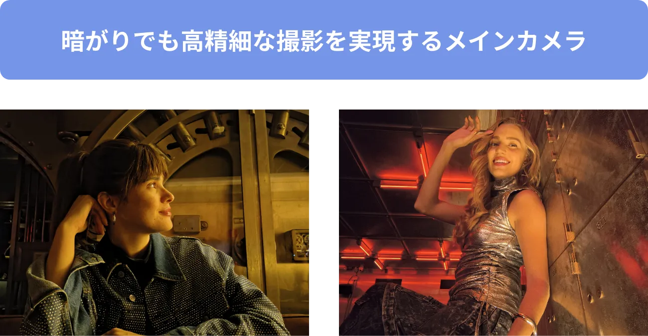 大型アウトディスプレイに被写体を映すことができるので、メインカメラを使った高画質な自撮り撮影が可能。