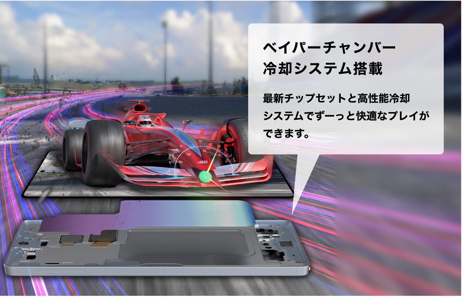 Galaxy史上最速・最強※1のチップセット「Snapdragon® 8 Elite for Galaxy」と強力な冷却システム「ベイパーチャンバー」の組み合わせでゲームを長時間快適にプレイ