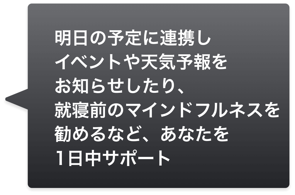 ※ 「Now Brief」機能の使用には、Samsungアカウントへのログインが必要です。サービスの利用可否は、国や地域、言語、デバイスモデル、アプリによって異なる場合があります。状況に応じたルーチンの提案でPersonal Data Engineを使うには、モードとルーチンを有効にする必要があります。写真、動画、音声ファイル、カレンダーのイベントなどのアクセス権限に同意する必要があります。公開の範囲のポリシーによっては、モーメントが表示されない場合があります。モーメントが提供する写真の説明は、ユーザーの意図と異なる場合があります。カレンダーの通知は、Samsungの「カレンダー」アプリをインストールし、Androidのカレンダーデータベースを利用するカレンダーアプリに対応している場合のみ利用できます。クーポンの通知は、「Samsung Wallet」アプリにクーポンの期限が追加されている場合のみ利用可能です。エナジースコアを確認するには、Samsung Galaxy WatchまたはSamsung Galaxy Ringで計測した健康データを「Samsung Health」アプリとの同期が必要です。一般的なウェルネス・フィットネスとしての使用のみを目的としており、睡眠障害や疾患の検出、診断、治療での使用を目的としたものではありません。測定値は、個人的な参考情報としてご使用ください。医療的なアドバイスは、医療専門家にご相談ください。