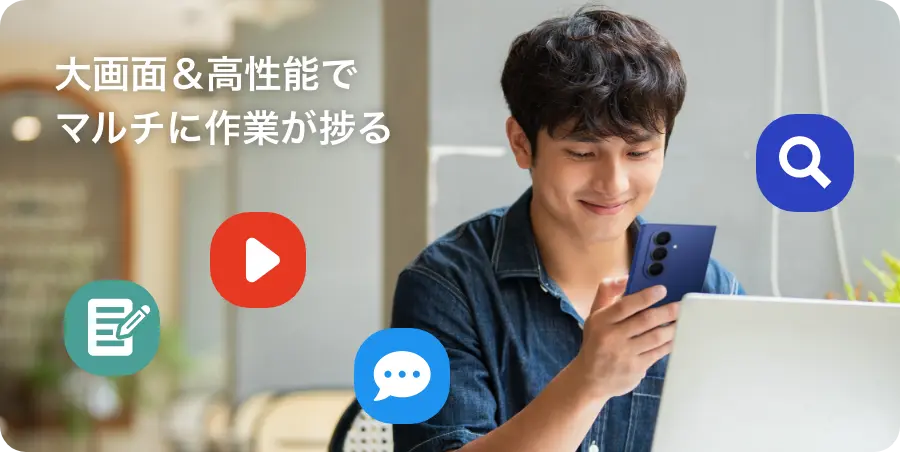 マルチタスクがさらに快適に。最大3つのアプリを画面分割※1して、まるで2台のスマートフォンが手元にあるように使える。
