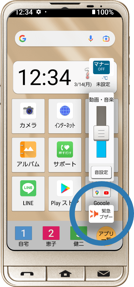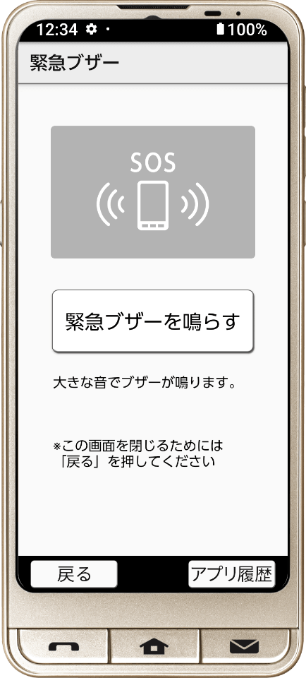 緊急ブザーを鳴らせるから万が一の体調不良や、SOSを出したいときに周囲に危険な状況を伝えることができる。