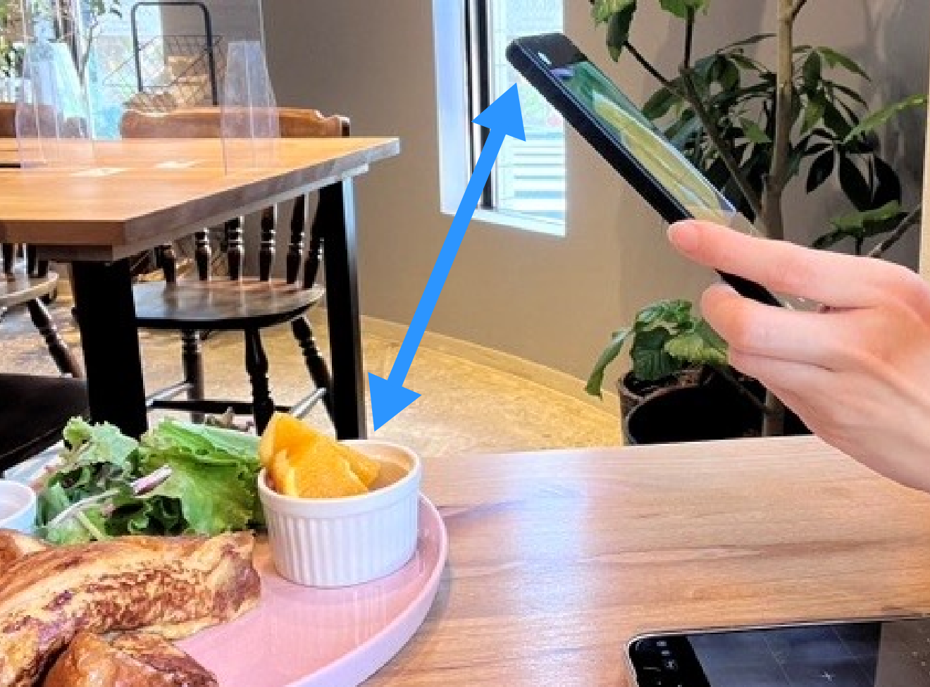 被写体にスマホの影が映りこまない!